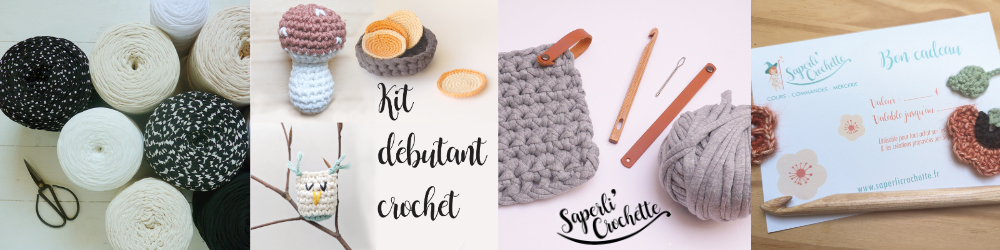 Sur ce site , vous trouverez également une petite sélection de « produits » liés à la pratique du crochet : Kit débutant, livres, trapilhos, crochets, fils … Il s’agit de ma petite mercerie sans prétention