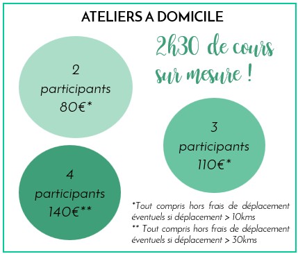 Me contacter pour établir un devis au 06 89 48 67 52. Inscription effective après avoir payé un acompte de 30% de l’atelier.